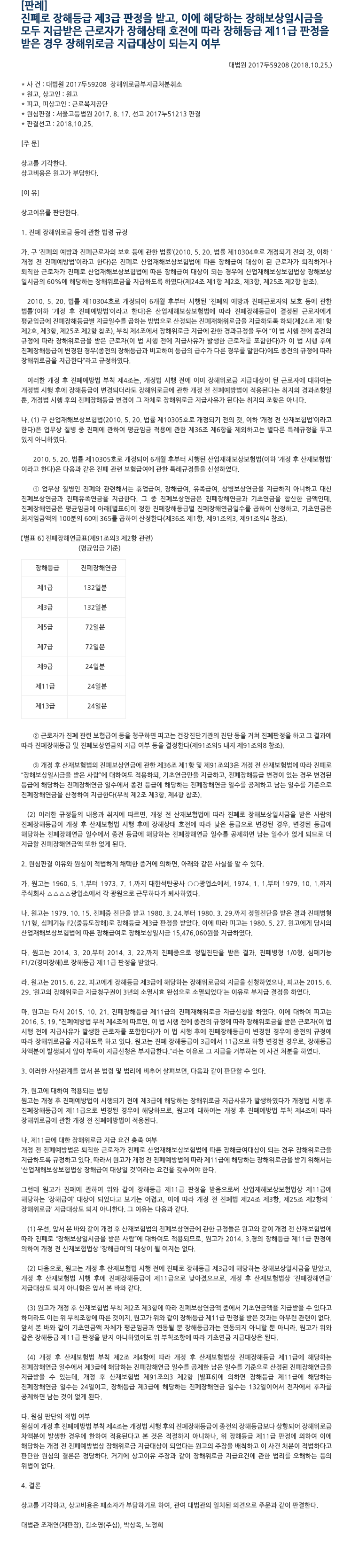 ÁøÆó·Î ÀåÇØµî±Þ Á¦3±Þ ÆÇÁ¤À» ¹Þ°í, ÀÌ¿¡ ÇØ´çÇÏ´Â ÀåÇØº¸»óÀϽñÝÀ» ¸ðµÎ Áö±Þ¹ÞÀº ±Ù·ÎÀÚ°¡ ÀåÇØ»óÅ ȣÀü¿¡ µû¶ó ÀåÇØµî±Þ Á¦11±Þ ÆÇÁ¤À» ¹ÞÀº °æ¿ì ÀåÇØÀ§·Î±Ý Áö±Þ´ë»óÀÌ µÇ´ÂÁö¿©ºÎ
